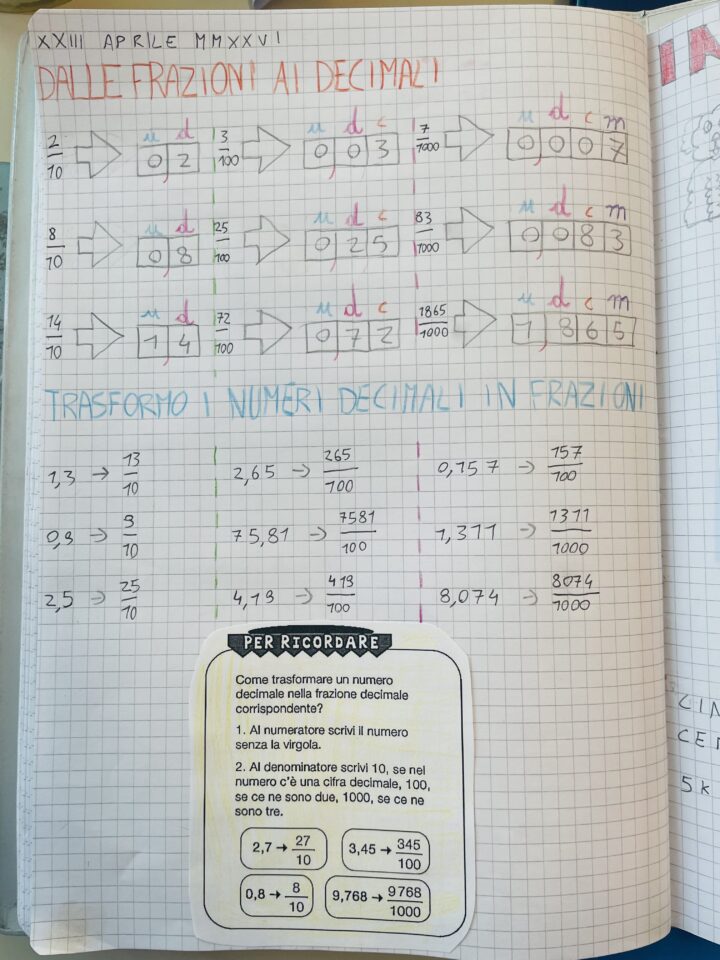 DALLE FRAZIONI AI NUMERI DECIMALI Scritto il Aprile 23, 2026Aprile 23, 2026 Tabella (parte intera, parte decimale)Download Per ricordareDownload FacebookPinterestWhatsAppPubblicitàPubblicitàPubblicità