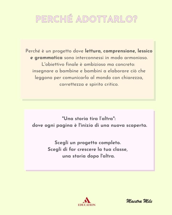 Perché è un progetto dove lettura, comprensione, lessico e grammatica sono interconnessi in modo armonioso. L’obiettivo finale è ambizioso ma concreto: insegnare a bambine e bambini a elaborare ciò che leggono per comunicarlo al mondo con chiarezza, correttezza e spirito critico.